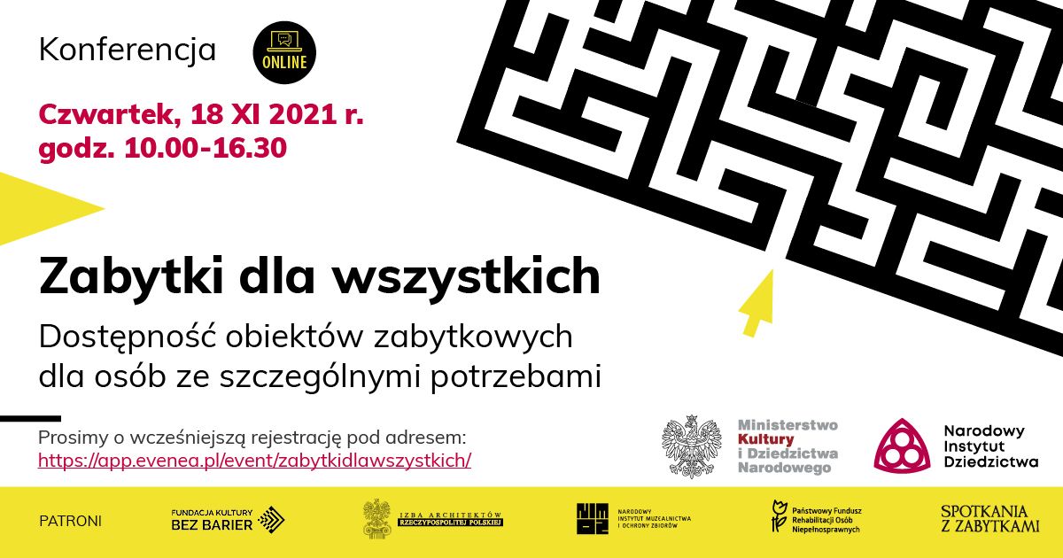 Narodowy Instytut Dziedzictwa zaprasza na konferencje „Zabytki dla wszystkich. Dostępność obiektów zabytkowych dla osób ze szczególnymi potrzebami” . Wydarzenie odbędzie się 18 listopada 2021 r. w godz. 10-16 w formie online.